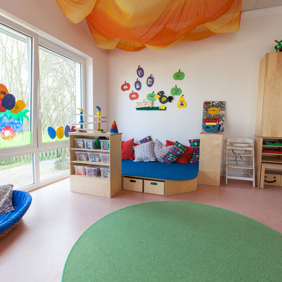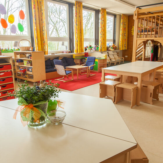 Unser Kindergarten ist von 6.30 Uhr bis 16.30 Uhr geöffnet. Die Räume laden dazu ein eigene Ideen zu entwickeln. Mehrere tausend Quadratmeter Außenspielplatz mit einer großen, teilweise überdachten Terrasse und zahlreiche Spielgeräte bieten vielfältige Spielmöglichkeiten.