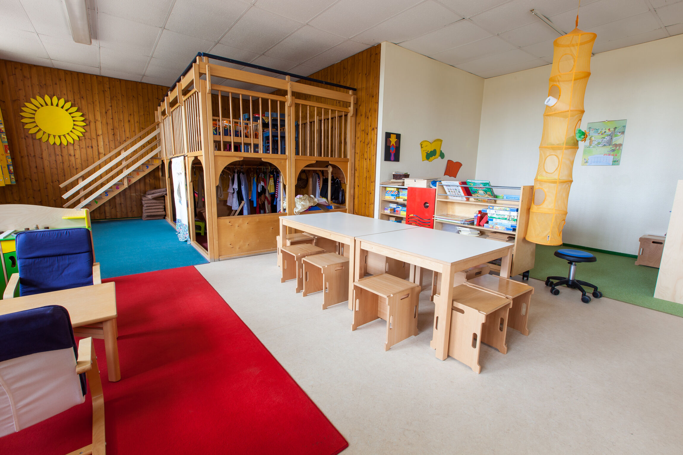 Die einzelnen Gruppenräume sind in verschiedene Spielbereiche unterteilt: Bauecke, Malecke, Puppenecke, Konstruktionsecke, Bilderbuchecke, Kuschelecke, Frühstücksecke. Diese Raumaufteilung gibt dem Kind die Möglichkeit, für sich eine überschaubare Ordnung zu schaffen, in der es sich sicher und wohl fühlt.